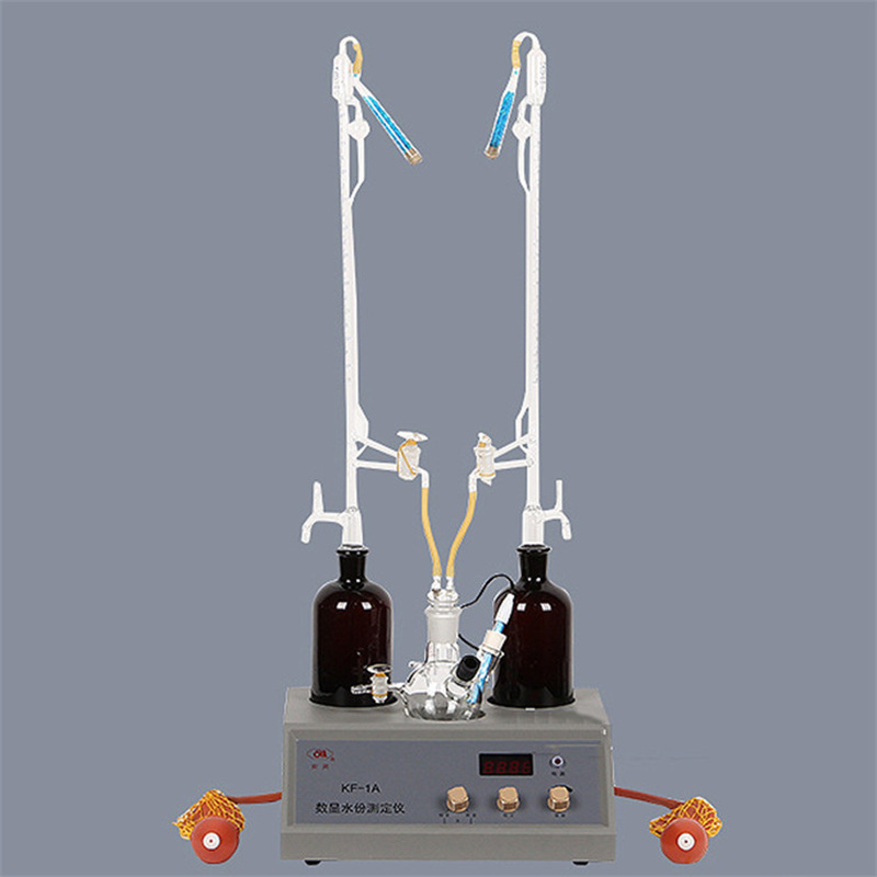 KF-1A 水分测定仪本仪器为卡尔费休(Kari. Fischer)滴定法测定水份的仪器。测定化肥、医药、食品、轻工、化工原料以及其它工业产品的水分含量。用于费休氏水份测定法。简便、迅速、精确。滴定系统采用标准、空气加压排除反应废液、操作方便。